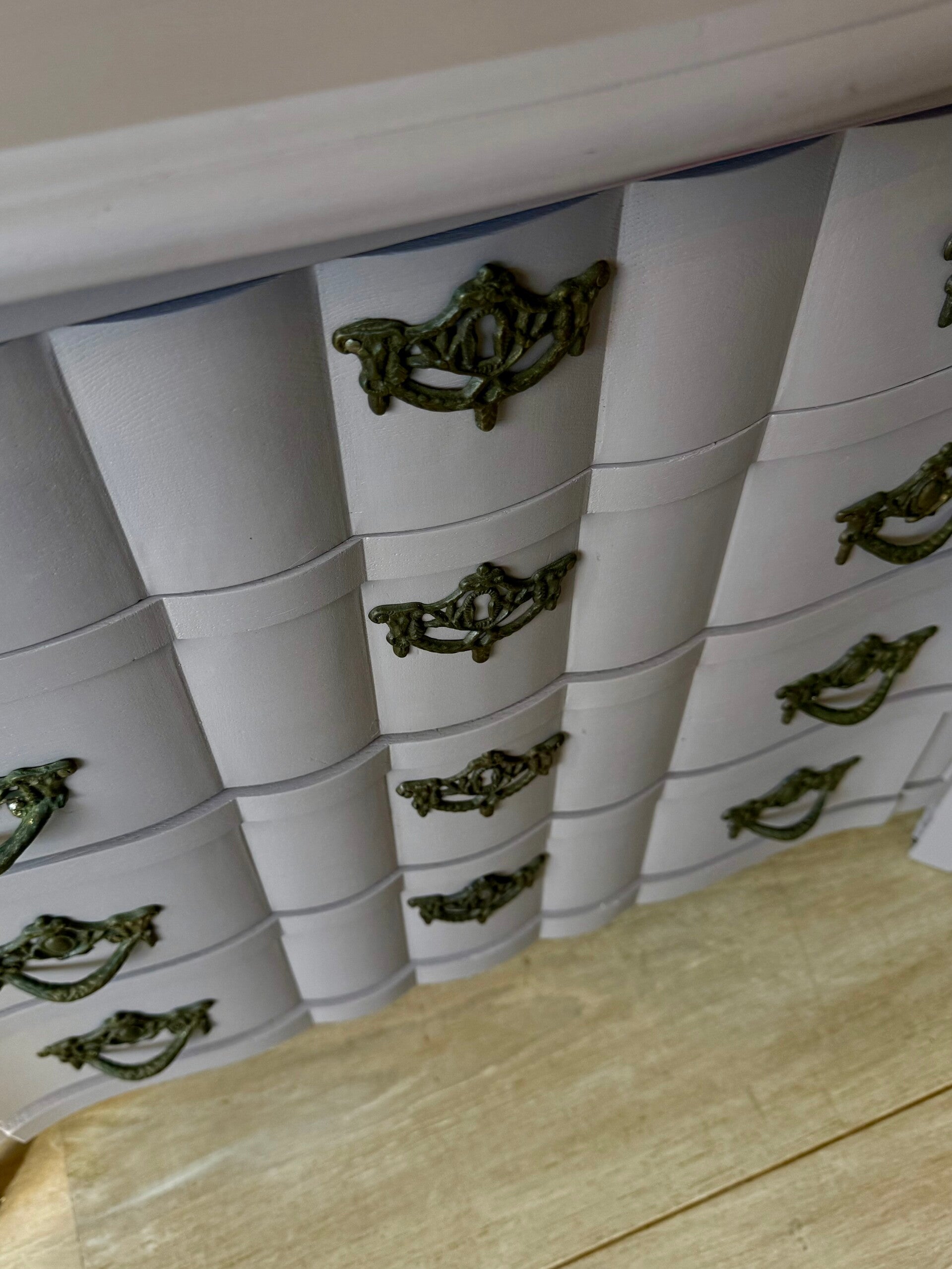 Het meubel is met zorg handgeschilderd in de kleur Lavender Haze van Fusion Mineral Paint. Deze zachte, vergrijsde paarstint geeft het kastje een rustige en stijlvolle uitstraling en past perfect in zowel een klassiek als modern interieur.