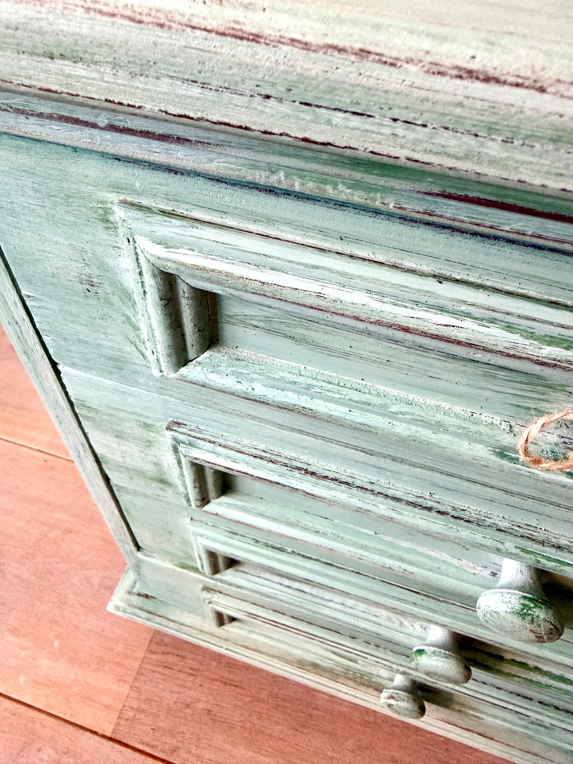 Ladekastje in lichtgroen, handgeschilderd & doorgeschuurd