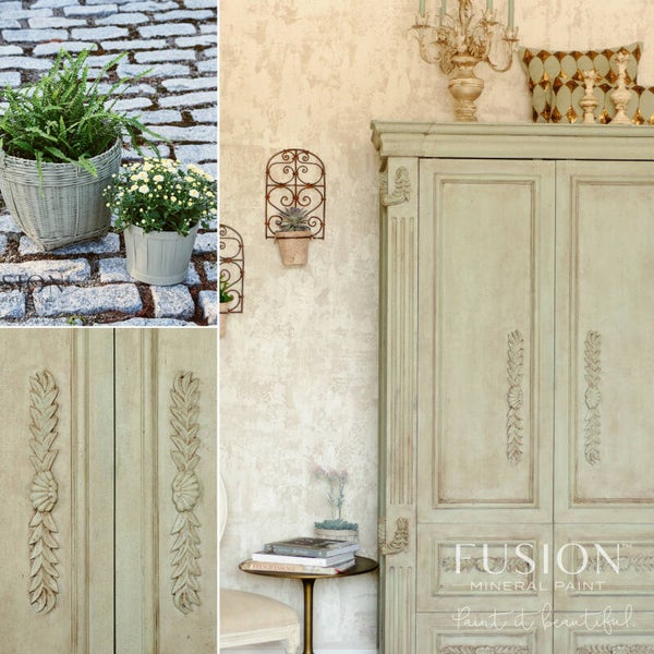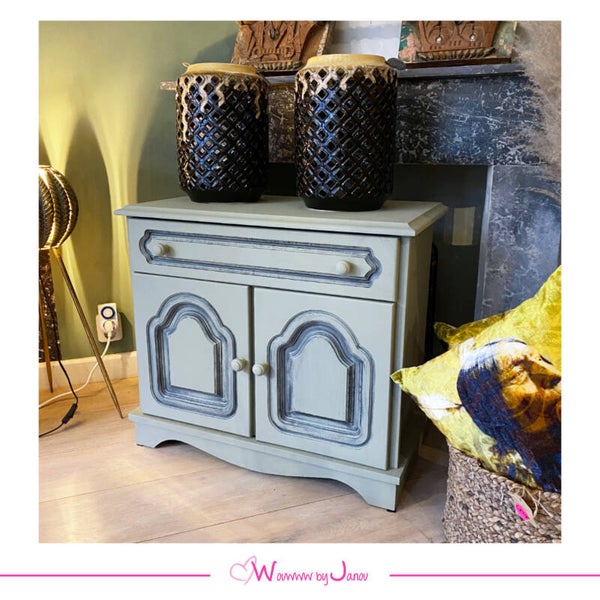 Kastje geschilderd in de kleur Lichen met kleur Ash